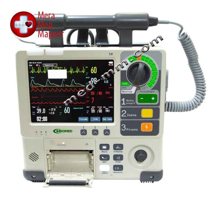 Дефібрилятор-монітор S8 застосовується для дефібриляції в ручному режимі, для дефібриляції в автоматичному режимі АЗД (AED), зовнішньої кардіостимуляції та моніторингу фізіологічних показників життєдіяльності пацієнтів (ЕКГ, ЧСС, ЧД (RESP), SpO2, ІР, ЧП, НІАТ, ТЕМП, ІАТ).